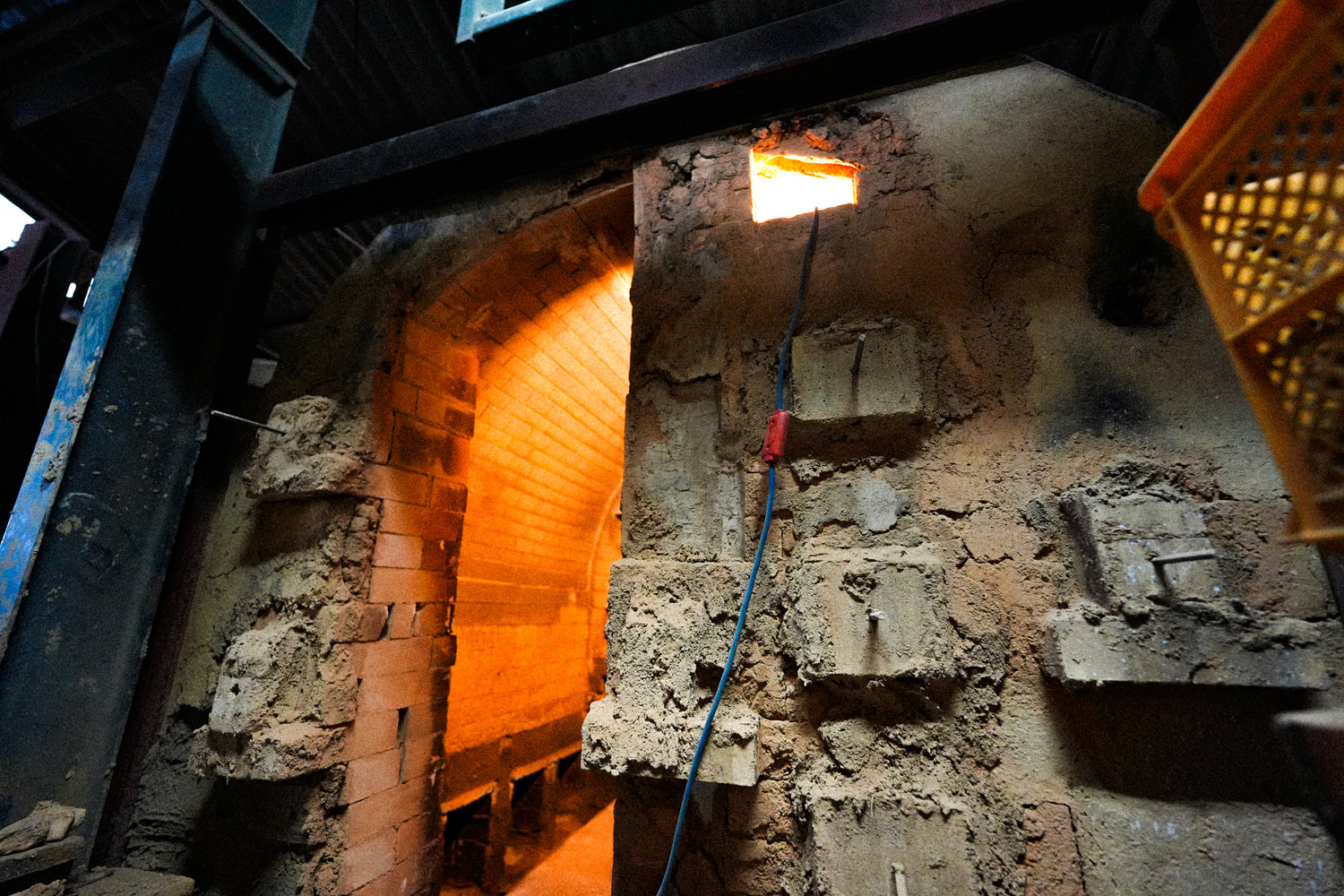 We use clay called "hiyose," which is a mixture of soil excavated from rice fields combined with mountain soil and black soil containing iron. Without using glaze, the pieces are fired at high temperatures of 1200-1300 degrees to create a hard, fired finish that produces a distinctive reddish-brown surface. The patterns created through "kiln transformation" are all unique, with no two pieces being identical.