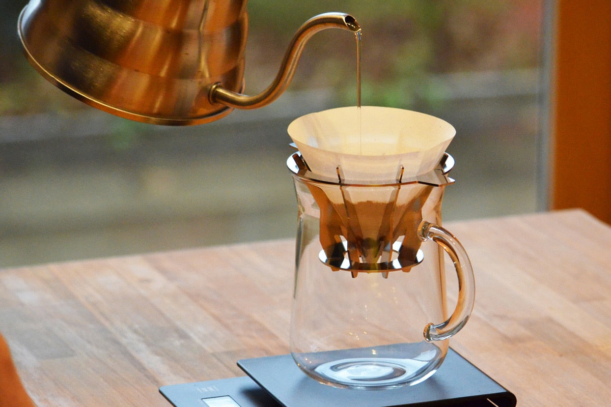 Paper filters are "made of paper." Since paper absorbs liquids, it moderately absorbs various components from coffee beans during extraction, resulting in a clean-tasting coffee. On the other hand, the fine mesh filter of the ST Mesh Dripper M is made of stainless steel and does not absorb liquids. This means all components extracted from the coffee beans can be enjoyed as flavor.
